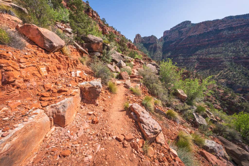 The Grandview Trail is rocky and exposed, with steep inclines and significant elevation changes. Mapping out the path is crucial because there’s no reliable water source until well below Horseshoe Mesa. Performance might depend on your route planning. It’s advisable to consult a detailed trail map before starting your hike.